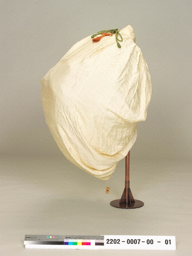渡辺守綱(1542-1620)が所用したと伝えられる母衣。母衣は平安時代末期にみられた懸保侶(かけほろ)に由来する、騎乗時に馬が駆けると長い布が膨らみ背面からの流れ矢を防御した武装の一つである。 室町時代頃より母衣の内部に竹籠などを挿入したものに変容したが、本作は古式の様式をとったものである。