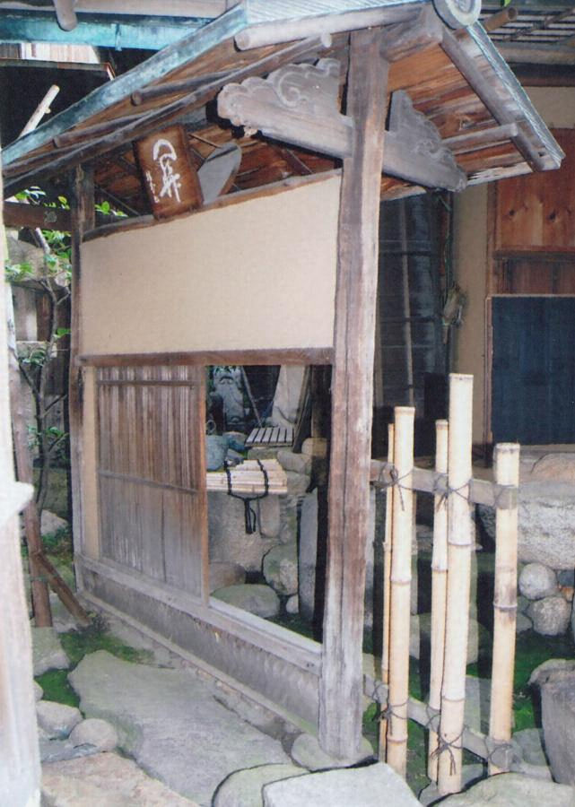敷地の南寄り、孤葊の南西側に建つ。間口一・七メートルの一間腕木門、切妻造銅板葺で、潜戸片引きとする。ナグリ仕上げの柱に腕木をつけて丸太の桁を受ける。北側の腕木は他建物の柄振り板を転用したとみられ、上面に絵様を彫る。良質な露地空間を演出する。
