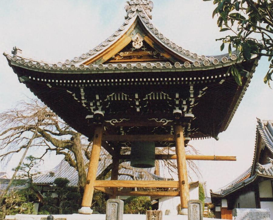 境内東側、庫裏と向き合って基壇上に建つ、入母屋造本瓦葺の吹放し鐘楼。三メートル四方の平面で、軸部は禅宗様を基調とし、組物は二手先詰組、妻飾は虹梁大瓶束とする。深い軒には強い軒反りをもたせるなど本格的なつくりで、境内景観を引き立てている。
