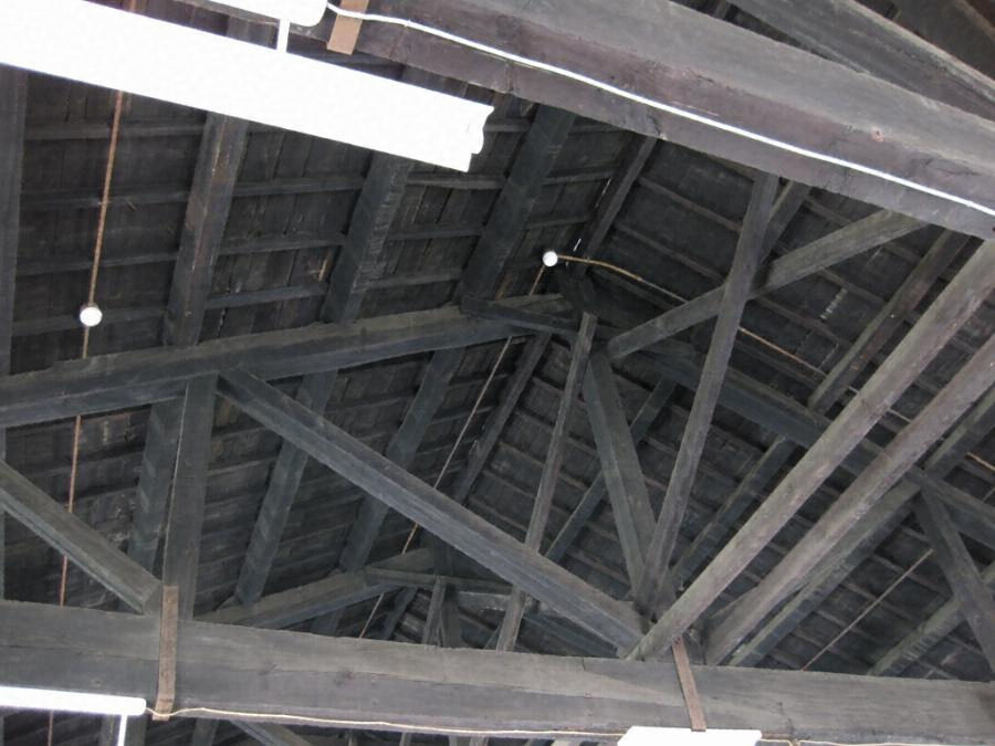 工場敷地の北端に位置する。木造平屋建、桁行四二・七メートル梁間一二・二メートル、切妻造スレート葺である。小屋組はキングポストトラス、筋違や火打梁、控柱等を組合せて補強し、内部に柱を立てない大空間を実現する。工場内の現存最古の施設。