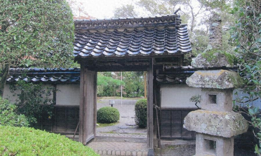 主屋前面に張出した離れの南側に矩折れにのびる塀と門である。仕切門は間口一・七メートルの南北棟の薬医門で、切妻造桟瓦葺。塀も切妻造桟瓦葺で外壁を漆喰塗とし、腰に簓子下見板を張る。前庭と主庭を仕切る境界装置として、豊かな庭空間を演出している。
