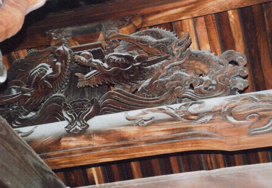 境内正面の薬医門形式の大門と左右に伸びる築地塀。大門は妻虹梁上の大瓶束に雲紋の笈形を付し、棟虹梁上の束の笈形には対の龍を象るなど、力強い造形をみせる。築地塀は壁面に定規筋二本をいれ、端部の貝形に絵様虹梁と蟇股を飾る。境内表構えに風格を醸す。
