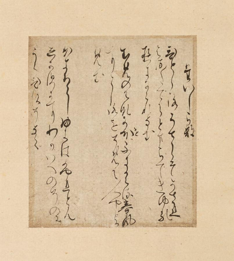 本作品は「白河切」と呼ばれる古筆切で、『後撰和歌集』の断簡である。伝称筆者は西行(1118~1190)で、平安時代後期から鎌倉時代初期の緩急抑揚の変化にとんだ筆運から、江戸時代に筆者を西行と鑑定され、名筆の一つとして鑑賞されてきた。