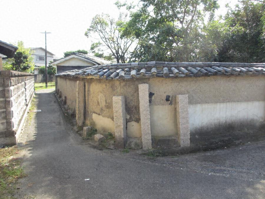 広大な屋敷地を囲む塀。南西部の一角と表長屋門西側を除く総延長二二二メートルで、本瓦を葺く。西面には二間腕木門を開く。土塀は、中塗仕上げで、隅部では円弧を描いて連続し、優美な曲面を描く。庄屋の豪壮な屋敷構えを構成し景観に寄与している。