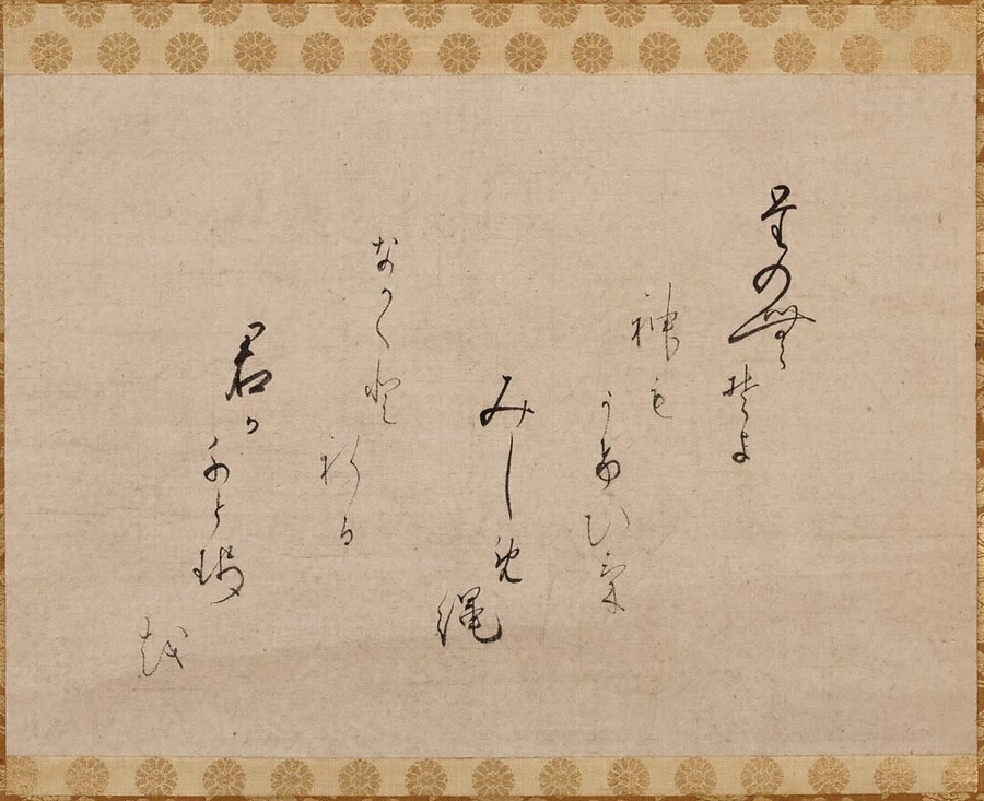 後水尾天皇の第二皇女(母は皇后和子 東福門院・徳川秀忠娘)が即位され、女帝らしい穏やかな優しさに満ちている。この天皇の御製は少なく、多くは古歌の御筆である。この和歌は前僧正公誉の作で、「寄社祝」と題して神社の浄域を承け引く注連縄に託して千秋万歳を祈った賀歌である。女帝の即位は奈良時代の称徳天皇以来の事で、奈良時代の女帝元明・元正両天皇の各一字を取り合わせたものである。