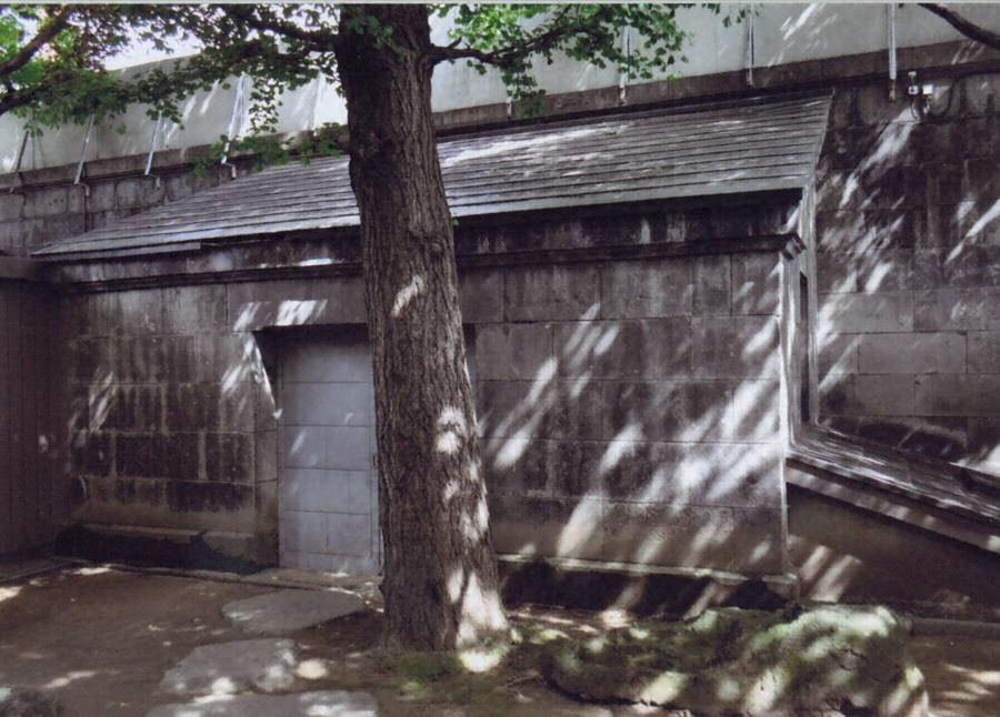敷地東辺南寄りに建つ、札幌軟石を布積とした平入の蔵で、東面の石塀を外壁とし、両妻に窓を穿つ。石塀内側に設けた石製持送で垂木掛を支持し、片流れの屋根をかける。南側にはムロに使用したコンクリート造の地下室が附属する。敷地内の景観を引き締める蔵。