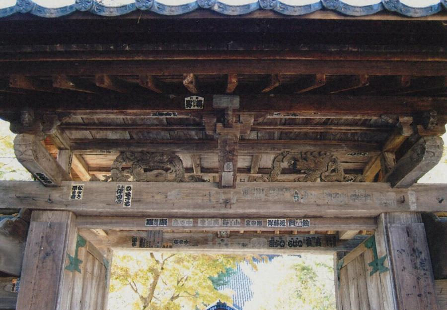 境内入口に建つ山門と左右の塀である。山門は大型の一間薬医門、切妻造桟瓦葺で、男梁上の三斗で軒桁を受け、冠木上には龍を象った蟇股を飾る。築地塀は精緻な石積基礎上に建ち、両端を前方に出した配置とする。禅院の結界に相応しい厳格な構えをみせる。