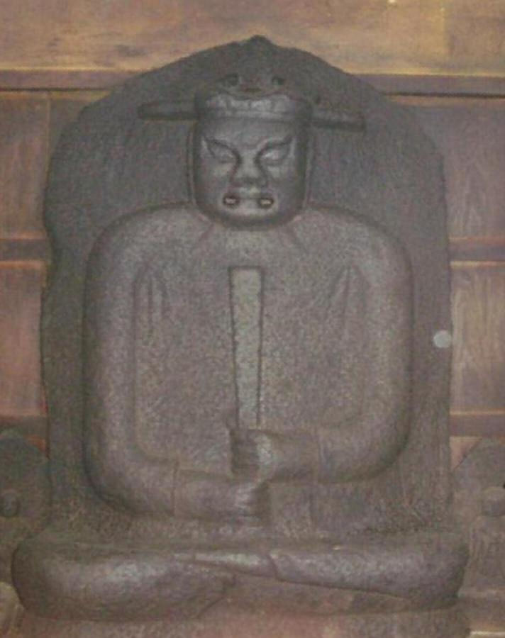 像は胸前正中で杓を執り結跏趺坐する閻魔像を半彫出したもの。