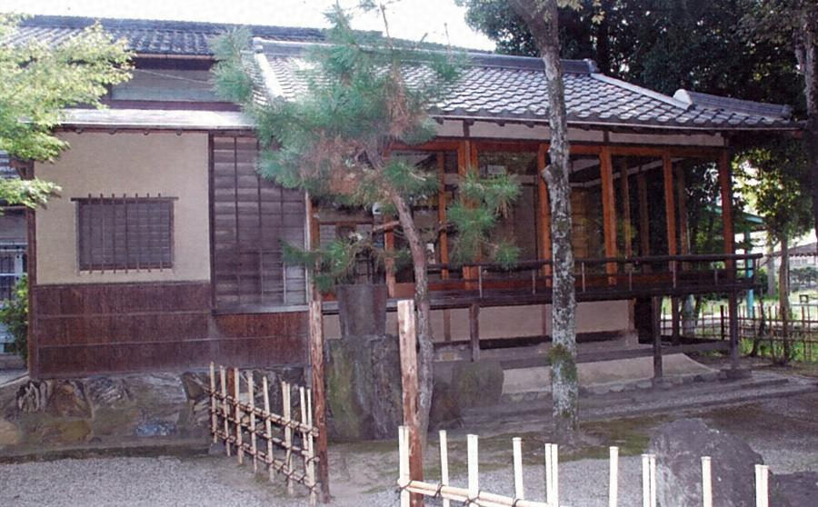 桁行三間半梁間二間半、東西棟の入母屋造桟瓦葺で、東に玄関を設ける。西側の四畳半茶室と三畳の水屋は懸造風に縁を廻らす。茶室は、面皮柱を使い、トコ柱の背側にナンテンの曲材を組込むなど、数寄屋を加味した開放的な構成になる。社叢景観に趣を添える茶室。