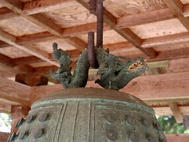 鋳銅、特異な竜頭、乳廓の唐草文、縦帯の四天王像、中・下帯の竜の図柄など全体的に斬新かつ意欲的なデザインを持つ。