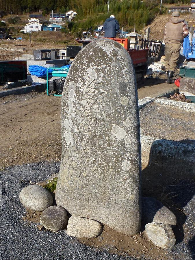 ア 溺死者30~40名 ここに穴を掘り埋葬し碑を建てた(前花貝の古老談) イ 特になし ウ 明治二十九年の海嘯で溺死し大野海岸に漂着した所謂「流 れ佛」の供養碑を、大野組の人々が、海岸近くの道端に建てて霊を慰めた。 南無阿弥陀佛碑と並んで建てられてあつたが、道路拡張改修の時現在地に移した。(前花貝の古老談)