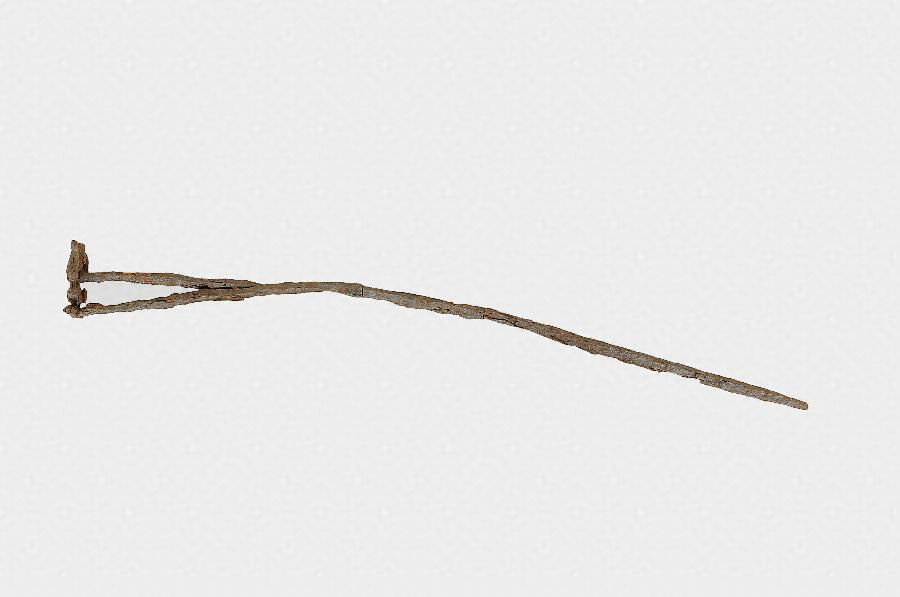 20 全長41.3cm 印面長4.3cm 柄断面幅0.6cm 印面幅3.5cm 柄断面厚0.6cm 印面厚0.4cm 質量<93.3g> 21 長さ8.5cm 環部幅1.0cm 先端部幅0.9cm 厚さ0.4cm 孔径0.3cm 質量<12.0g>22 長さ13.4cm 断面幅0.5cm 断面厚0.2cm 質量19.2g < >は残存値を示す