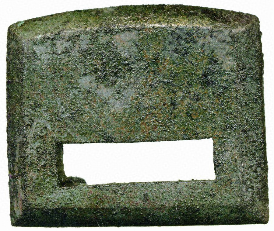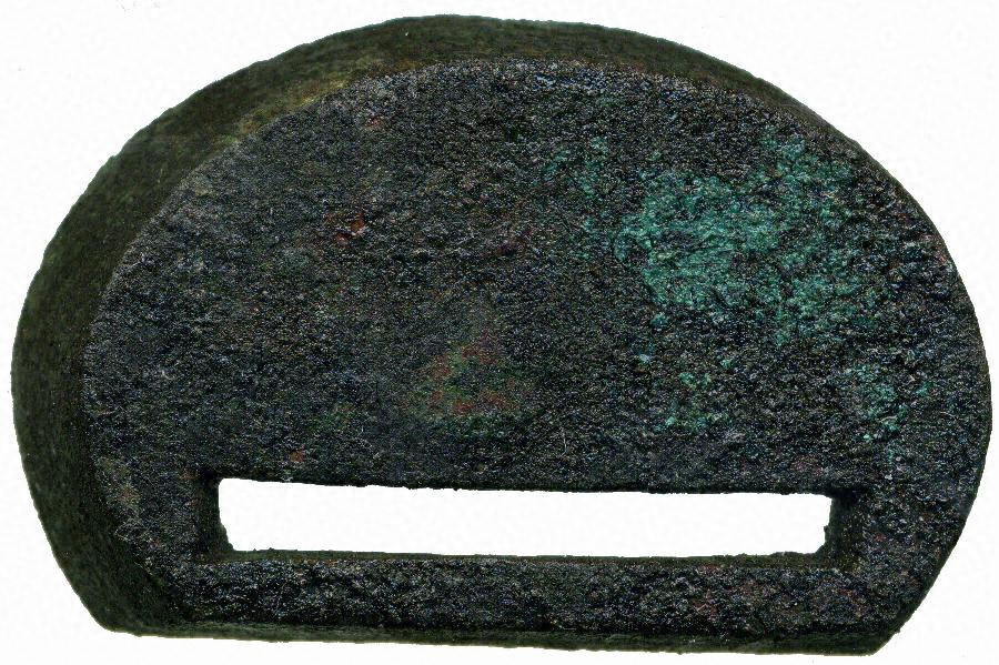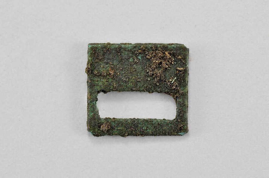 6~17は、帯金具(銙帯具)で、革製の腰帯につけられた金具である。特に青銅製のものは役人が身に着けた可能性があるが、出土状況、資料の時期・大きさなどから、金具の付いた帯の状態ではなく、金具だけが個々に持ち込まれたと考えられる。千葉県内では300点程度出土していると考えられるが、12点出土した谷津貝塚のように一遺跡で10点以上出土したのは5例ほどに限られる。