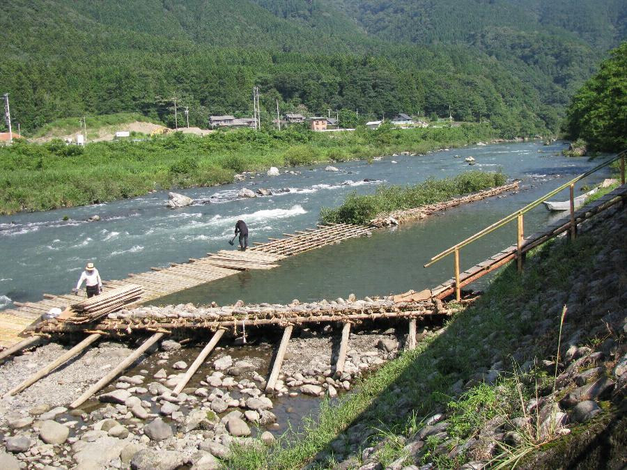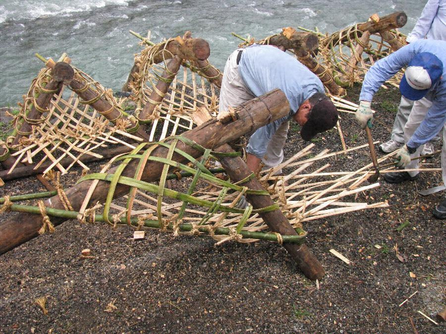 本件は,岐阜県西部を流れる揖斐川にみられる,鮎などの川魚を捕らえる簗を設営する技術である。
