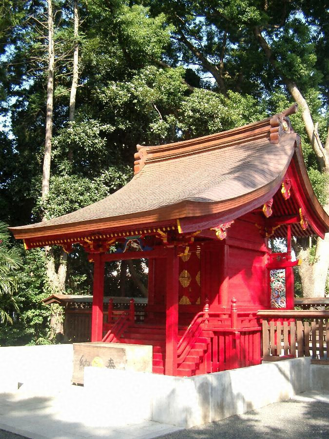 一間社流造。銅板葺(もと柿葺)。打越垂木二軒。三方に束立ての縁、擬宝珠高欄。脇障子左側は竹に虎、右側は唐獅子牡丹の透彫。柱上出三斗。中備なし。妻飾りは豕扠首、斗上に花肘木。棟、両桁及び向拝桁端にかぶら懸魚。水引虹梁に連三斗、絵様繰形木鼻。中備蟇股、脚間に鳥。つなぎ虹梁は直材。木階五級。腰長押。