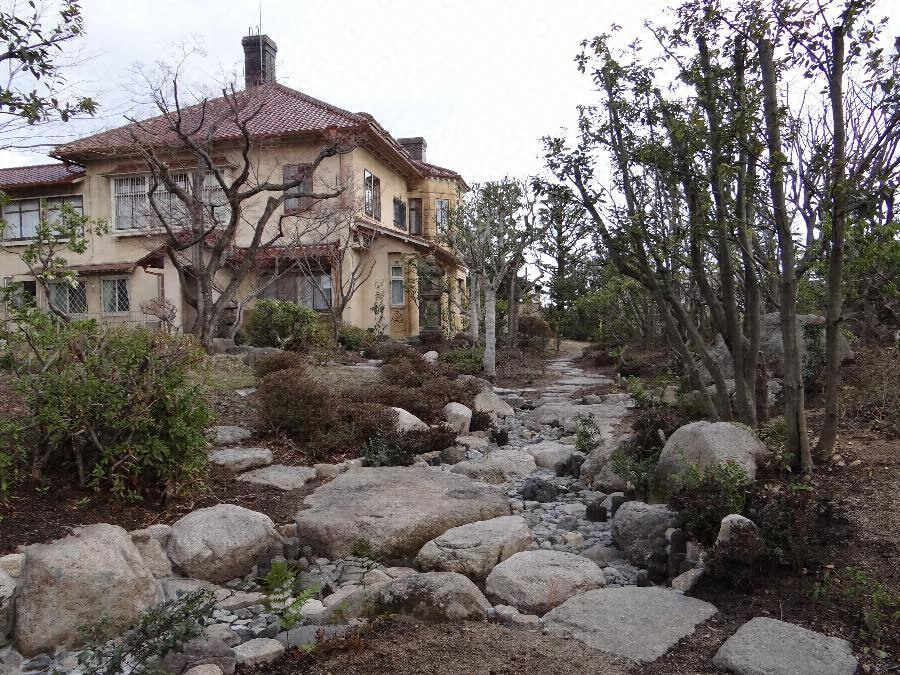 昭和12年(1937)頃の作庭。旧乾家住宅は東灘区の山麓部に位置し、付近は近代になって比較的早い段階で郊外住宅地として開発され、大正時代頃から関西の財界人が居を構えるようになり、大規模な邸宅が数多く建築された。