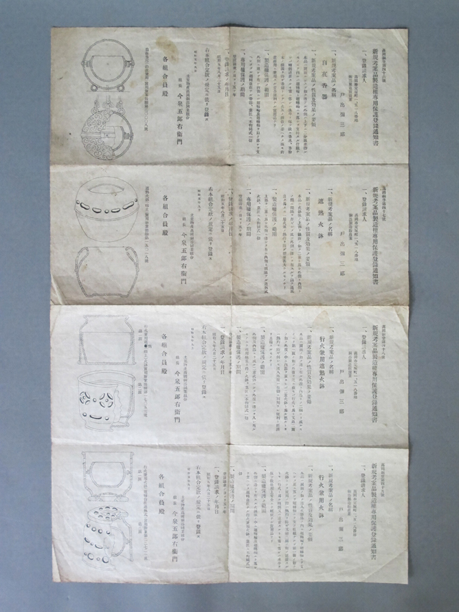 高岡銅器「新規考案品製造権専用保護登録通知書」