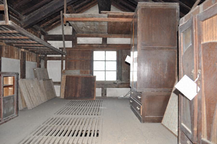 店舗兼主屋に隣接し、東面して建つ。土蔵造二階建。正面の下屋は腰を人造石研ぎ出し仕上げとし、二階部分を漆喰塗とする。土蔵内部に階段はなく、二階北側の出入り口で主屋と接続する。大八車を収めていたと伝える蔵で、商家の屋敷構成をよく残す。