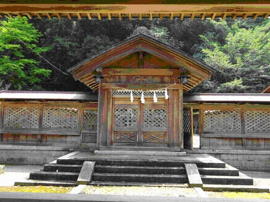 本殿と拝殿の間に神門を開け、神門に続いて本殿を囲繞する瑞垣を廻らす。神門は切妻造妻入の一間一戸門で、前面柱筋に上部を菱格子とする桟唐戸を吊る。瑞垣は切石積基壇上に木造で建て、上部を、正面側で菱格子、側背面では縦格子として正面を飾り立てる。