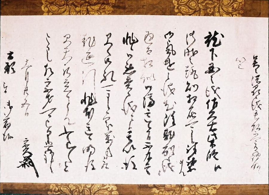 この書状は「土形」某宛て「佐久右・柴修」両人への書状を拝見、ご懇情を深謝し、返し書きに美濃の国の件は抜かりなく依頼の旨を付け加えている。