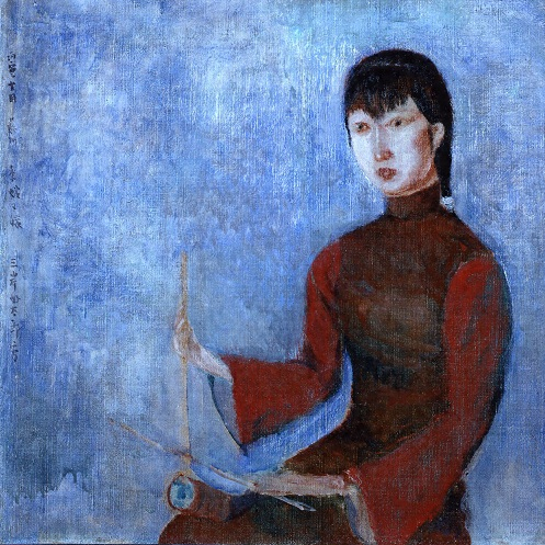 三岸好太郎は1926(大正15)年の9月から12月にかけて、同じ札幌出身の画友岡田七蔵とともに中国を旅行した。上海、蘇州、杭州などをまわる旅で、上海の街の西欧的雰囲気に大きな魅力を感じるとともに、一方では中国の独特の風物にも興味を覚え、中国服の人物像なども多く描いている。「支那の少女」は胡弓を奏でる中国服の少女を描いた作品。左端には「丙寅十月 蘇州 李媛々嬢 三岸好太郎写」と書き込まれている。蘇州を訪れた際に、三岸はこの少女が演奏する姿を目にし、その華奢な姿を心にとめたのだろう。この作品は春陽会第5回展の出品作。第3回展で岸田劉生が退会した後の春陽会では日本趣味、東洋趣味ともいえる文人画調の作風が目立つようになっていた。そうした傾向への感応が、縦書きのサイン、薄塗りの画面などに表れている。少女の服や背景には墨のぼかしのような描き方も見られる。