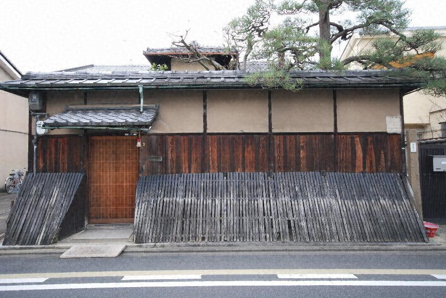 主屋表側から両側面に矩折れに伸び、主屋玄関を囲む。南寄りに門口を開き、右に中門を設けて玄関前の庭を画す。中門脇には雪隠を、門脇には供待を備え、全体を数寄屋風にまとめる。七・七メートルの狭い間口ながら、本格的な大塀造の景観を形成している。