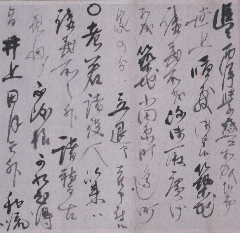 端に「安政四年丁巳夏村田蔵六書」と記されている。宛先は不明だが、宇和島藩の関係者に送ったものと思われる。村田蔵六(大村益次郎)はこの年に幕府が設置した武芸訓練機関である講武所に出仕しており、講武所に関わる情報が詳細に記されている。また、蔵六の書状では、講武所を生み出した老中阿部正弘のことも取り上げられている。阿部の官職が伊勢守だったことから、蔵六は阿部のことを「大神宮」と記している。