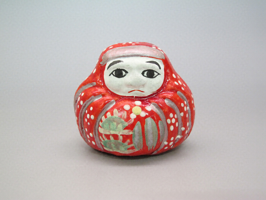 両目は大きく写実的で、髭は描かれておらず、顔は白い。起き上がり小法師のように丸く、振ると音が鳴る。