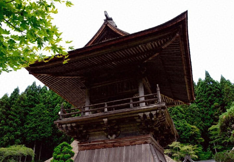 方丈の南、低い乱石積基壇に東西棟で建つ袴腰付の方一間形式で、入母屋造檜皮葺である。梁を現しとして銅鐘を吊り、その上で化粧隅木尻を組み、化粧屋根裏とする。軒は二軒繁垂木である。二手先詰組とした縁腰組も充実し、たちが高く存在感のある鐘楼である。