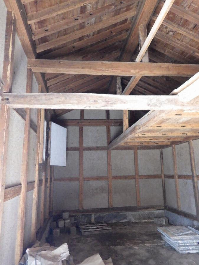 敷地南側に位置し、東面する。桁行九・一メートル、梁間三・六メートルで、切妻造、置屋根形式。内部は一室で、西半のみ二階床を張る。外部は、基礎石上を全面漆喰塗とし上部に鉢巻を廻らし、正面に引戸と両開き窓一所を設け、敷地背面寄りの景観を整える。