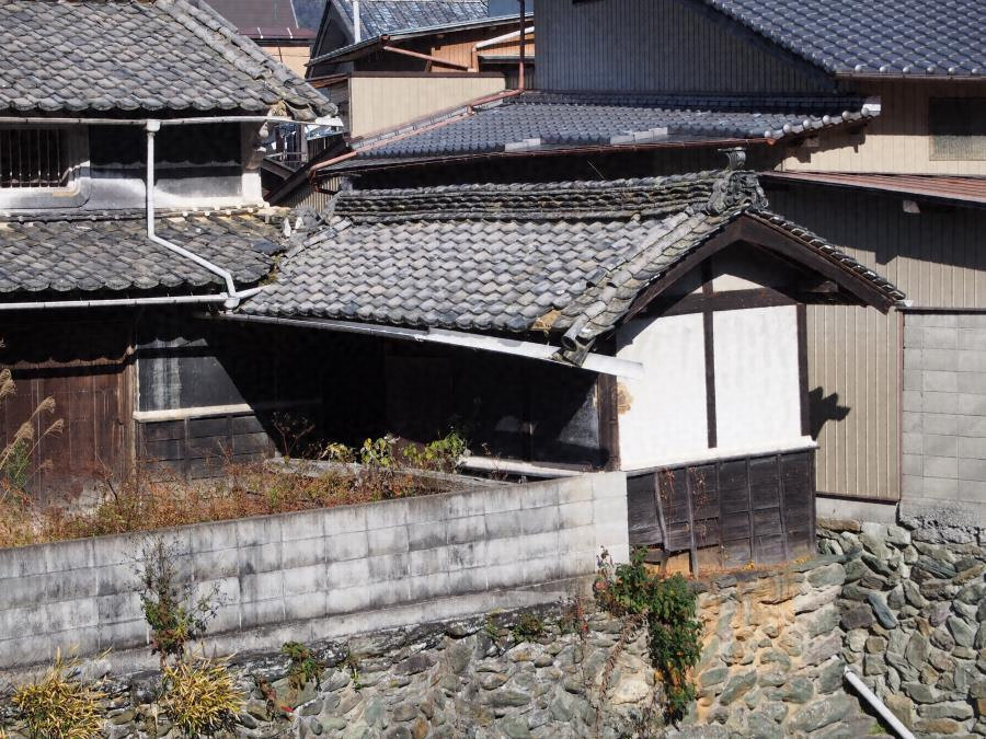敷地東面を画す木造平屋建、切妻造桟瓦葺で、門口の南に倉庫、物置、外便所を配す。街路側の壁は基礎石上に腰簓子下見板張、上部漆喰塗とする。外側の街路は井内谷川に降りる石段へと続くもので、藍染など河川と関わりの深い屋敷のあり方を象徴する門である。