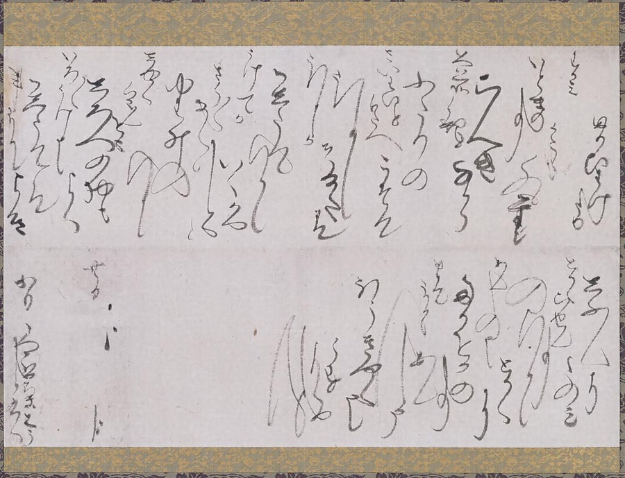 金沢藩主前田利家の正室、前田まつの折紙消息。利家は豊臣五大老の一人であったが、その死後嫡男利長の時に家康に対する配慮から、芳春院は人質として十五年間江戸で過ごした。この消息は江戸在住中と考えられ、宛名は帯封を切ったので「かも□」と不詳である。二人の小袖を送る祝儀の内容で、「ひせん事」は備前守利長かと思われる。