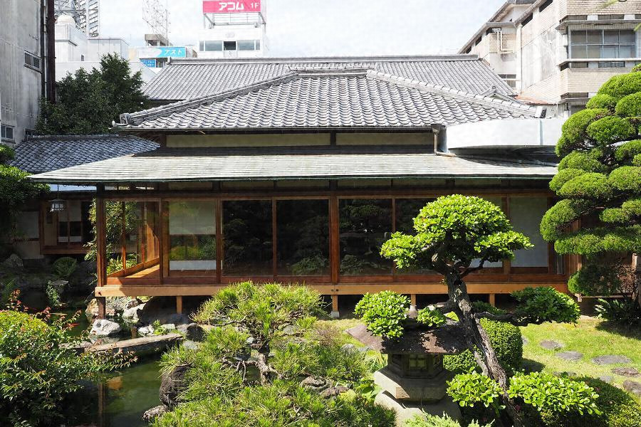 木造平屋建、寄棟造、桟瓦葺で、江戸時代末期の庭園に南面して建つ。ゆったり構えた大床と棚、丸窓の張り出し型の附書院、幾何学模様風の格縁天井などに見所がある。面取り材を駆使した繊細な数寄屋風で、新規性も採り入れた意欲的な造形を内包した和風建築。