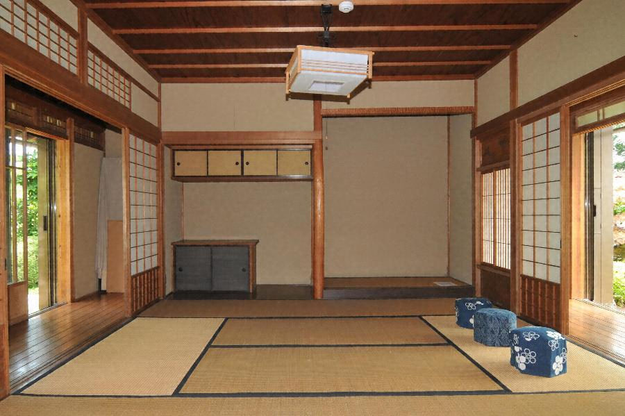 敷地中央に位置し、庭に面して建つ。二室の続き座敷で、東面に床と棚を設け、西面に押入を設ける。床柱はスギの絞り丸太で、書院は平書院とし、良材を用いてすっきりとした座敷飾りを見せる。南北両側に縁を設け、明るく開放的なつくりとする。