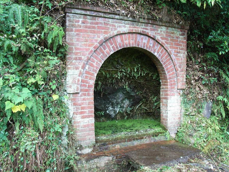 敷地北面の崖の東側にある煉瓦造の貯水槽。槽径は約一・五メートルで、取水口は幅一・五メートル、高さ二・二メートルのアーチ門を開く。上の取水口より規模が小さいものの、技法や意匠は共通しており、保存状態も良い。敷地内の給水設備の様相を今に伝える。
