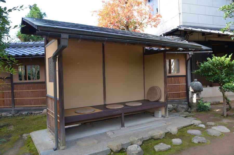 茶室の南西方に位置する。茶室に対してやや北に振り、庭への眺望を確保した配置とする。桁行三・〇メートルで招造屋根とし、腰掛の後ろに下屋を付ける。主に丸太を用い、袖壁には下地窓を設けるなど、数寄屋風意匠を見せ、露地空間を良好に形成する。