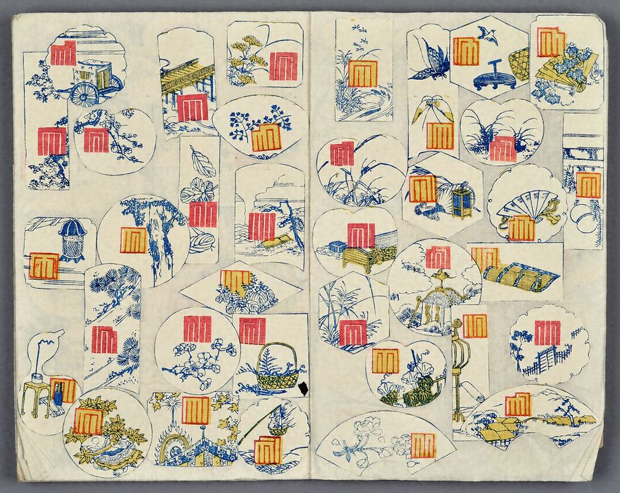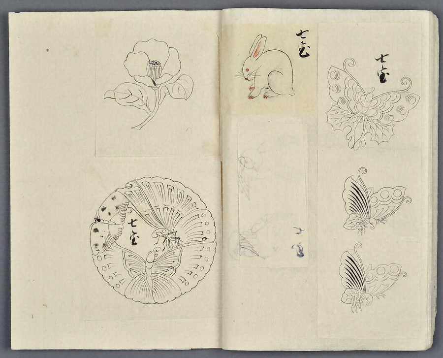 松平慈貞院(貢姫/10代佐賀藩主鍋島直正の長女)の下絵帳。表題に「御した絵」とあり、貼紙に「御上御写し遊ばされ候御下絵なり」と記されている。源氏香図の刷物が切り貼りされ、貢姫自筆で蝶や兎などがスケッチされている。