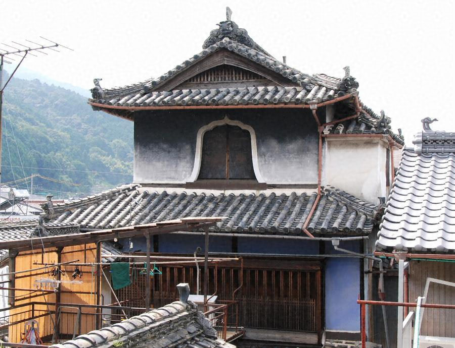 店舗兼主屋の背面側に位置する。木造四階建で、花頭窓を備える楼閣風の特色ある外観を見せ、三階には一〇畳座敷と七畳半の次の間の南と西に縁を廻らす。四階は畳敷六畳の周囲に板間を配し、遊戯室として使われたと伝える。町並景観の核となる建物である。