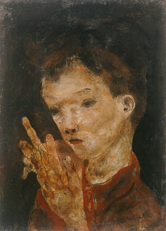 1940年代、作者は自分の家族を題材にした大作に挑む一方、婦人や子どもの頭部を描いた小品も多く手掛けている。というのも、まず、人間の表情をこのような小品制作で研究し、それから大型の家族像に取り組んだのだと考えられる。しかし、この作品では、成長する子どもの不安定で微妙な顔や手の表情がうまく捉えられ、単なる習作の域に留まっていない。竣介の愛息はこの作品が制作された頃はまだ幼く、この作品のモデルになっているかどうかはわからないが、父親の視線でつかんだ子どもの表情に違いなく、子どもへの愛情や洞察が感じとられる。