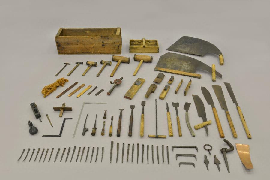 船大工用具は,これらの魚介類を捕獲・運搬する木造船を製作する用具一式で,各工程の用具が網羅されている。コブネなどと呼ばれる小型の船から丸子船のような大型の船まで多様な船を製作してきた様相,また強度や浮力等の向上のため舳板を縦に接ぎ合わせる,特色ある構造の船を製作してきた様相等を読み取ることができる。