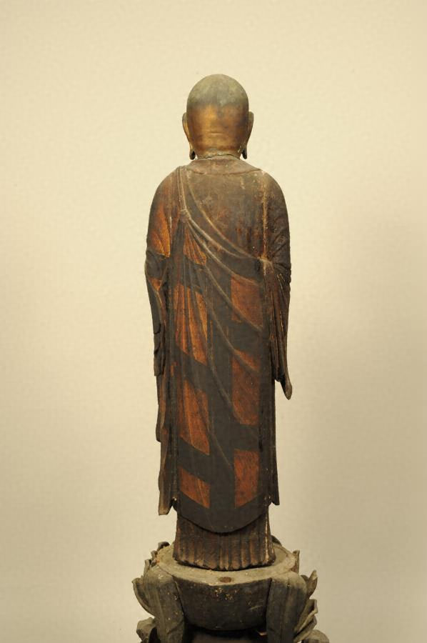 木造・肉身部漆箔・衣部彩色。僧形で、白毫は、水晶嵌入、半眼で口を少し開き、瞳は墨彩、鼻孔を穿ち、耳朶環状で中央を貫く。三道を表す。胸・腹には括れ各一条を表し、衣が両肩を覆い、左胸前で袈裟を吊り上げる。裳は左を外にして中央で裳を打ち合わせる。右腕は垂下して手を前に突き出して錫杖を握り、左腕は屈臂して掌に宝珠を乗せる。右足をやや前に出し、足裏の角枘を蓮華座に差して立つ。表面は肉身部を漆箔とし、衣部は白地彩色として文様を描く。