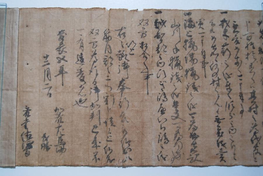 藩政時代に、小松藩大頭村の庄屋を務めた佐伯家に伝来した文書。戦国期を含み松山藩加藤嘉明支配期より、江戸時代の小松藩一柳家に係る文書が中心となっている。