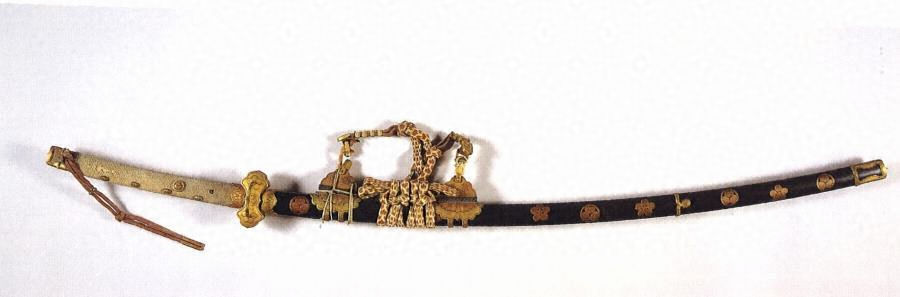 太刀 銘 和泉大掾藤原國輝/享保二十乙卯年二月吉日、黒漆葵五星文蒔絵飾太刀拵、