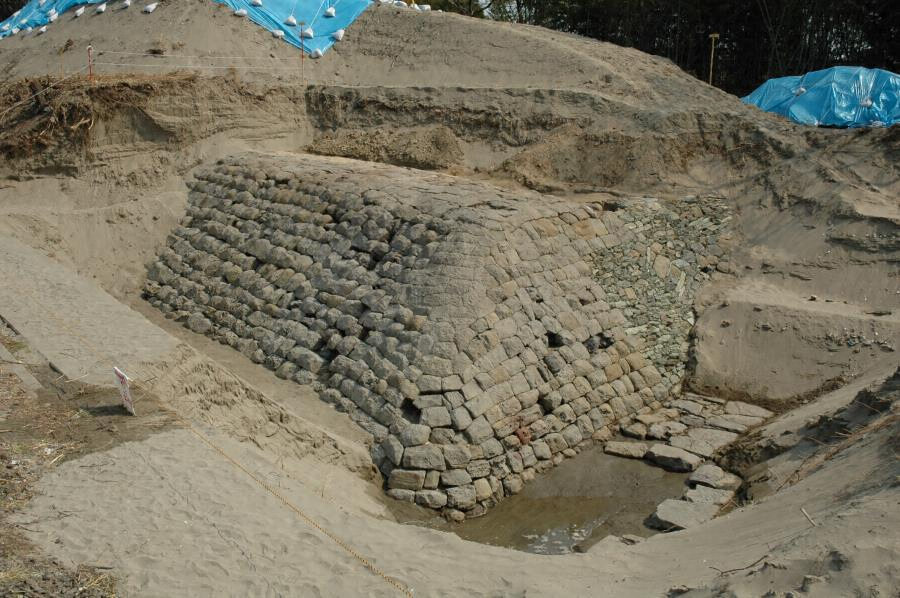 江戸時代後半頃,紀の川河口部南方に築かれた延長約1.5kmの防潮・防波堤防。石堤と土堤の二重構造からなる中堤防(高さ5.0m,幅27m以上),その南側の土堤(南堤防)及び北側にある自然堤防(北堤防)からなる。近世の土木技術及び防災を知る上で貴重。