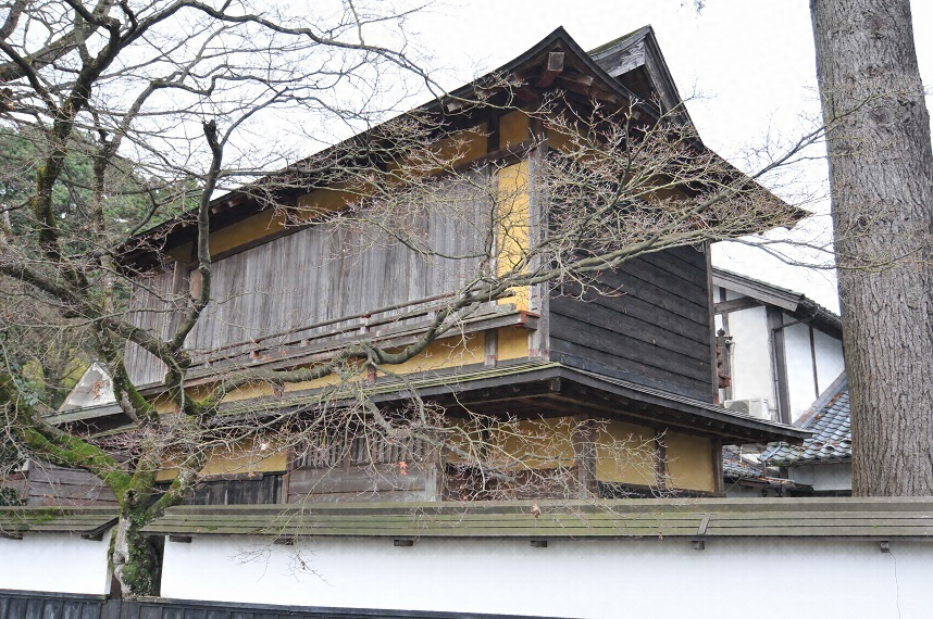 新座敷の西側に位置し、南東部が主屋の北側に接続する。木造二階建、入母屋造金属板葺で、外壁は黄漆喰塗、一部下見板張とする。二階に三畳の前室と四畳半の床付の座敷を設け、手摺越しに南西に広がる庭園を望む。敷地北西隅の中庭周囲の景観を構成する。