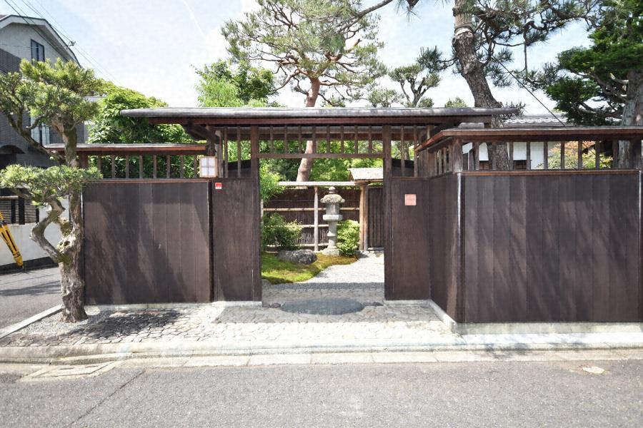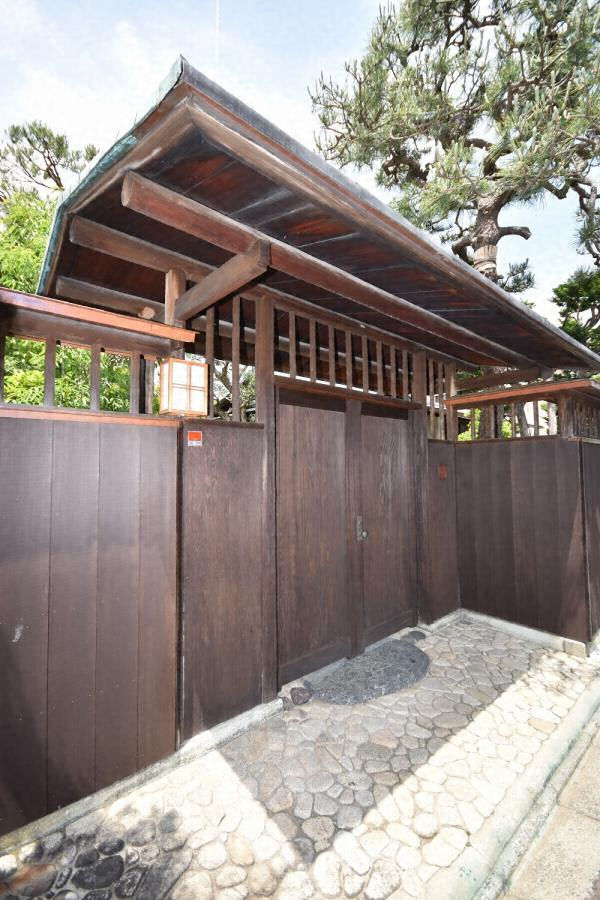 敷地南東隅に位置する間口三間の腕木門。中央間を板戸とし、両脇間を板壁とする。欄間に疎らな竪格子を入れ、両端柱の腕木で桁を支え、銅板葺の屋根を載せる。床は石敷きで、中央に巨石を据える。端正な意匠でまとめ、昭和初期の住宅の表構えを整える。
