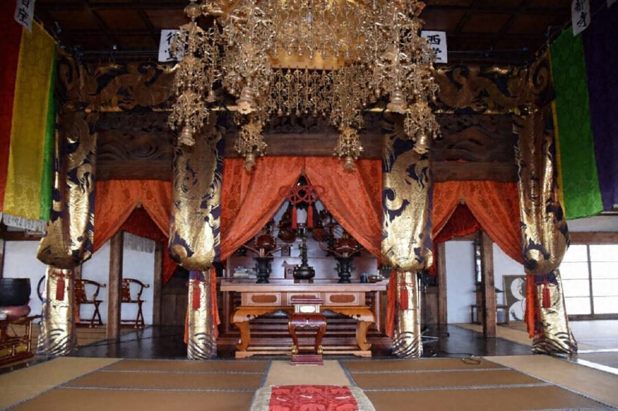 境内中央に南面して建つ、入母屋造桟瓦葺の本堂。2列6室平面で、後列中央を内陣とする。前面に畳敷広縁を通し、東面と西面を畳縁とする。内陣前の2柱と来迎柱は円柱で他は角柱である。広縁は元は縁と土間で書院に通じており、曹洞宗本堂の特徴を示す。