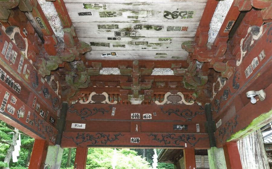 拝殿及び幣殿は正面中央に構える大きな唐破風造の向拝を彫刻や彩色,錺金具により飾り,参詣者のための壮麗な礼拝空間を創っている。また神楽殿や手水舎などにも豊かな装飾が施されている。これらの社殿は富士講の寄進により再興され,森厳な境内に近世らしい装飾豊かな参詣の空間を創出している。その造営には地元の郡内大工が当たり,随所にその流派的特徴が認められる。富士山信仰の隆盛を背景に整えられた,地方的特色の顕著な社殿として重要である。