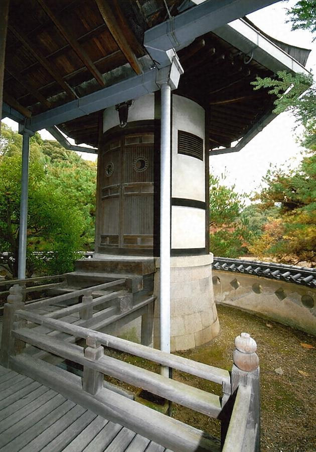 広大な敷地の中央に建つ本館は,庭園に面して大書院棟や中書院棟などを並べた大規模建築で,本館の周囲には大小の茶室群などを配置する。いずれの建物も,高谷の説く方円思想における象徴的図形である方形と円形を用いた独創的な意匠でまとめており,独自の茶の湯の空間を創出している。