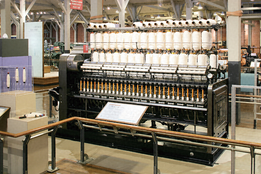 展示機は、1934年に製造を開始したRI型精紡機をベースに、戦後規格変更したうえ、種々の改良を加えた株式会社豊田自動織機製作所製ハイドラフト精紡機です。